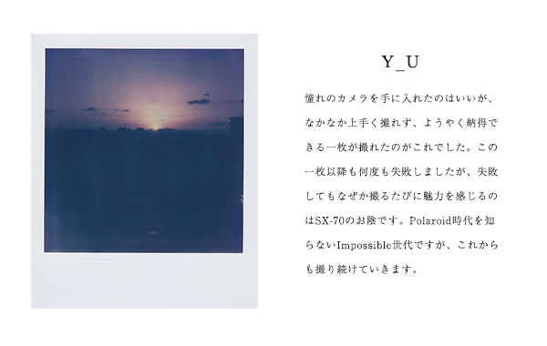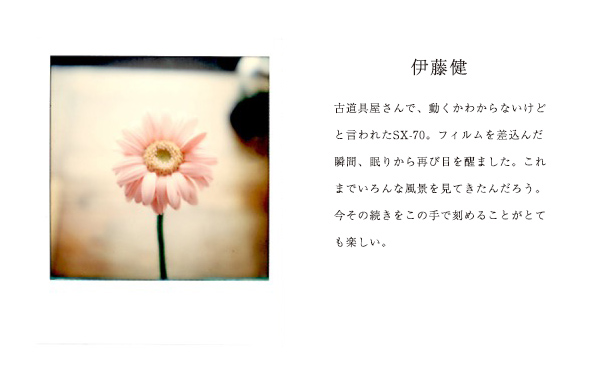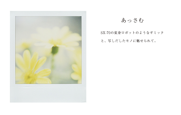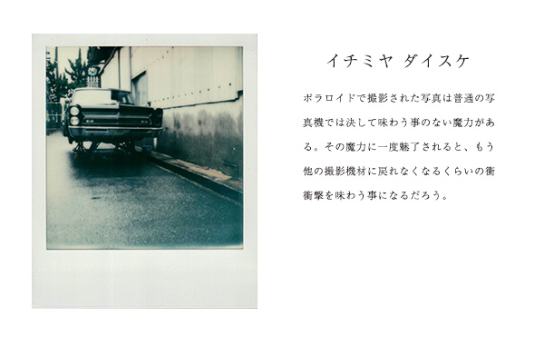 インスタントフィルム展に出展される作家さまの作品とコメント紹介です。今後随時更新予定となっております。