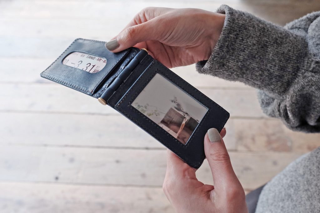 通勤では定期入れとして、会社のデスクなどではご家族やペットの写真をいつでも見られるように寫眞立てとして。