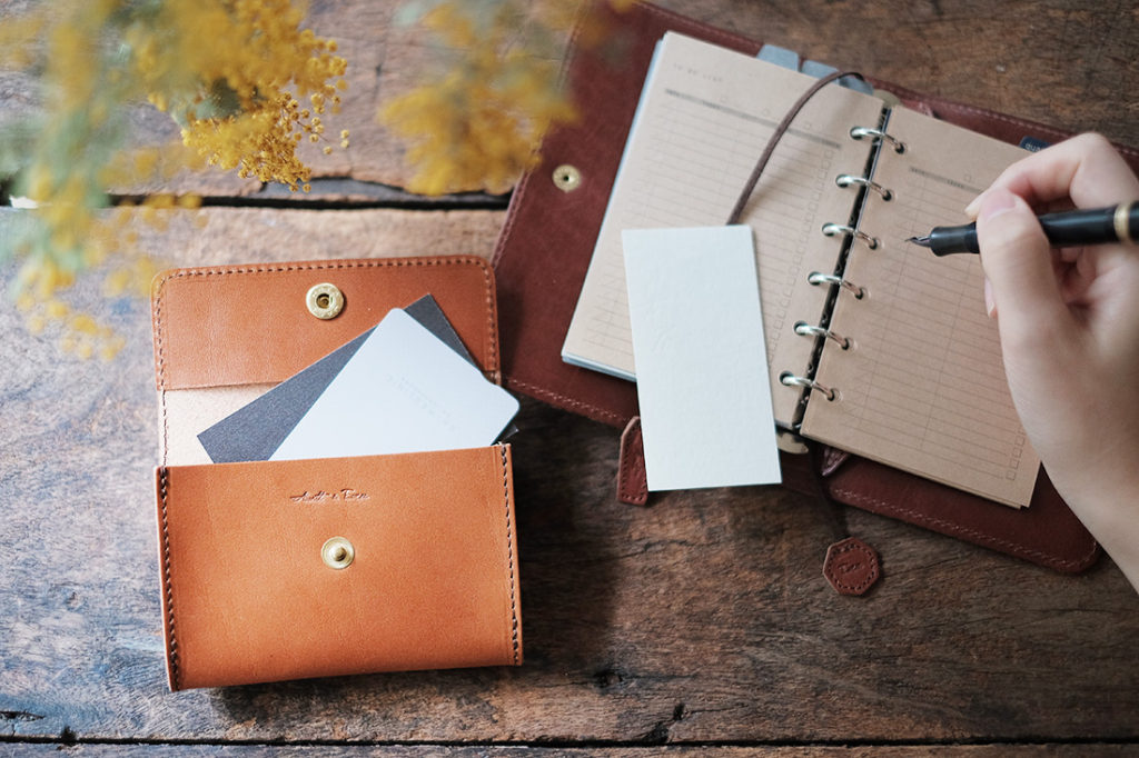ベロ側には自分の名刺、相手からもらった名刺はフタ付きポケットに大切にしまっておくという使い方や、
