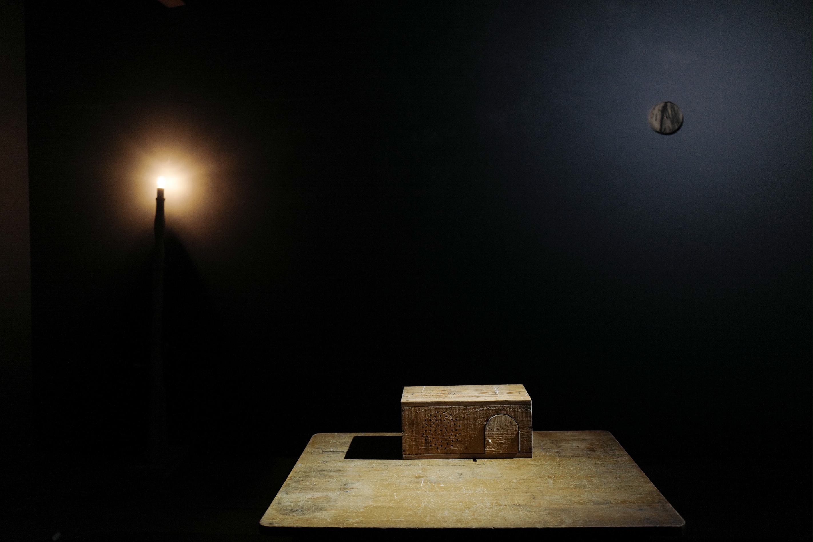 卉奏の蔵「光の在り処」ではこの音が出る装置のほか、時計や照明によるインスタレーション作品を展示しています。