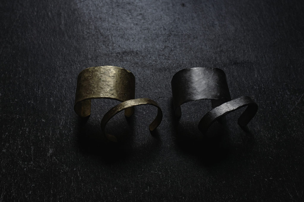 なお、ブラスは比較的柔らかい為、手で広げたり狭めたりすることもできますので、多少の調節はしていただけますが、チタンは硬い素材のため、手で広げることは難しくなります。