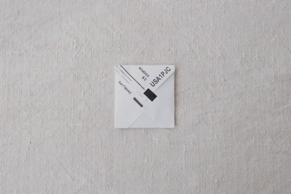 正方形の小さな封筒も可愛くできちゃいます。きっちり測ったりしなくても、なんとなくで折ったニュアンスもいい塩梅に。借りた小銭のお返しなどに、そっと作って包むだけでもなんだかいいものになったような気分◎