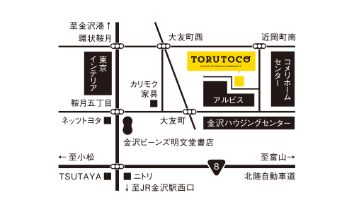 金沢東IC下車、国道8号線経由西念交差点右折、約10分